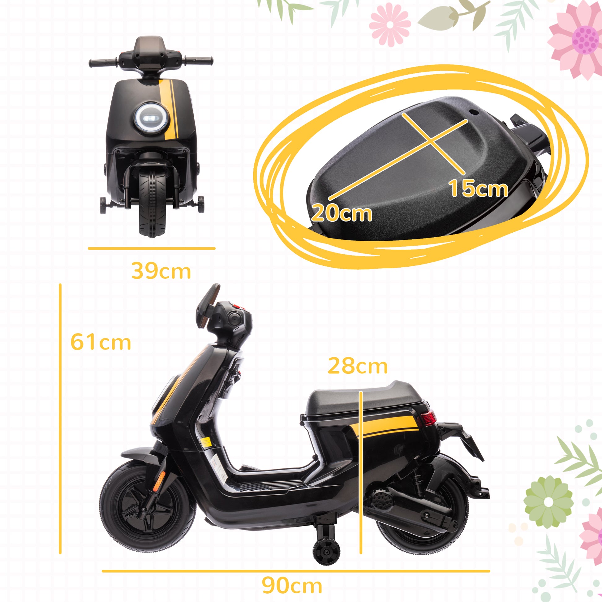AIYAPLAY 6V Ride on Motorbike, Kids Electric Motorbike w/ Headlights, Music, Training Wheels, for Ages 18-36 Months, Black