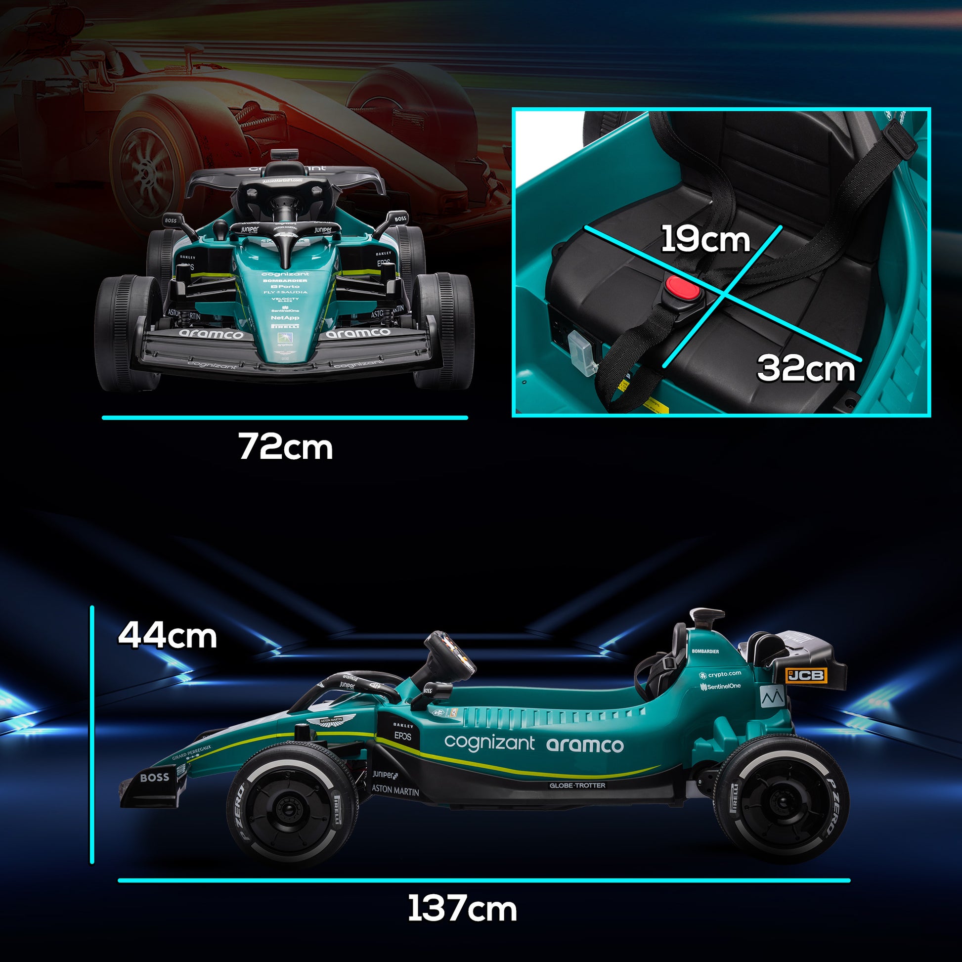 AIYAPLAY Aston Martin Licensed 12V Kids Ride on Racing Kart w/ Bluetooth, 4 Suspension Wheels, Music Lights Horn, Green