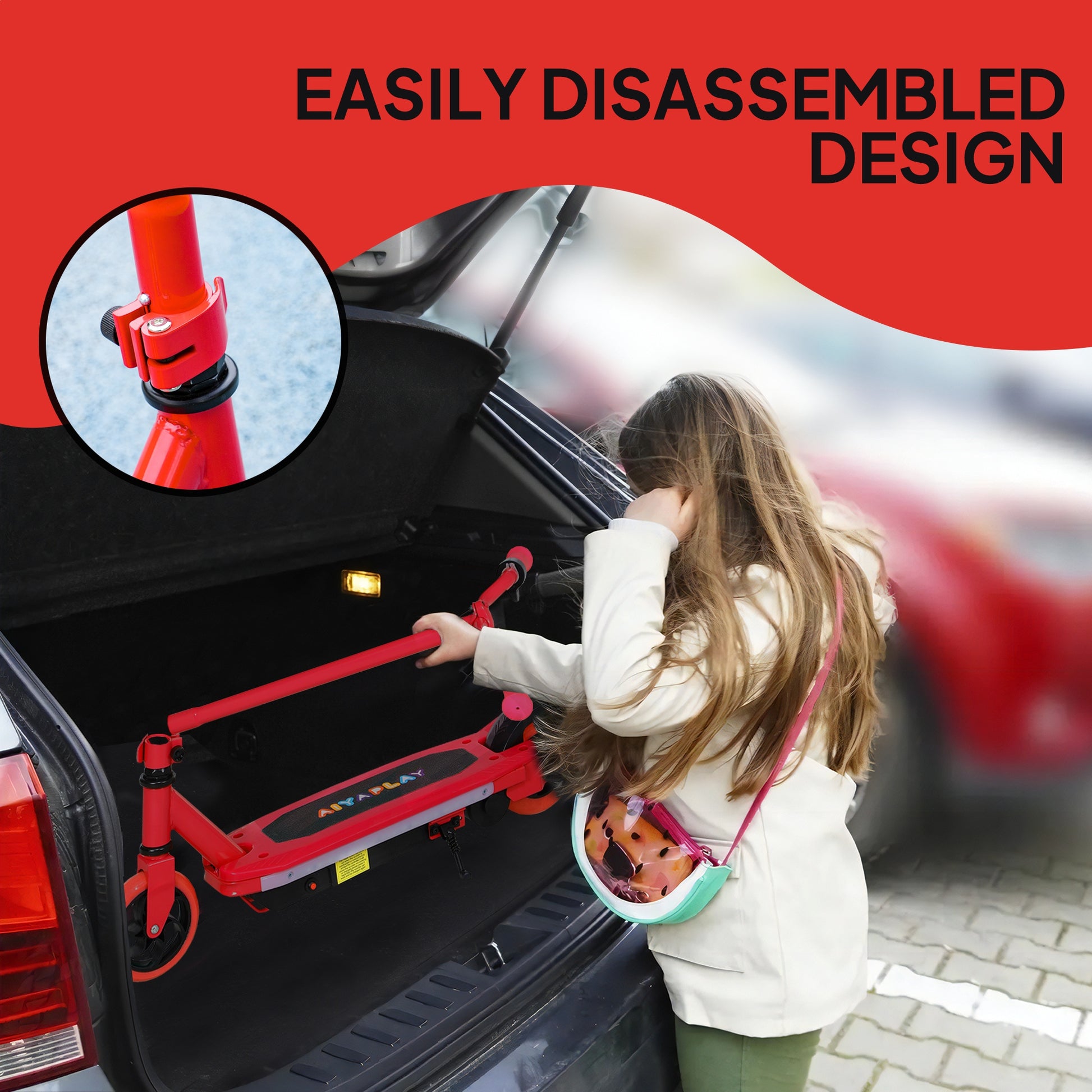 AIYAPLAY Electric Scooter for Kids 6-14 Years, with Colourful Lights, Red