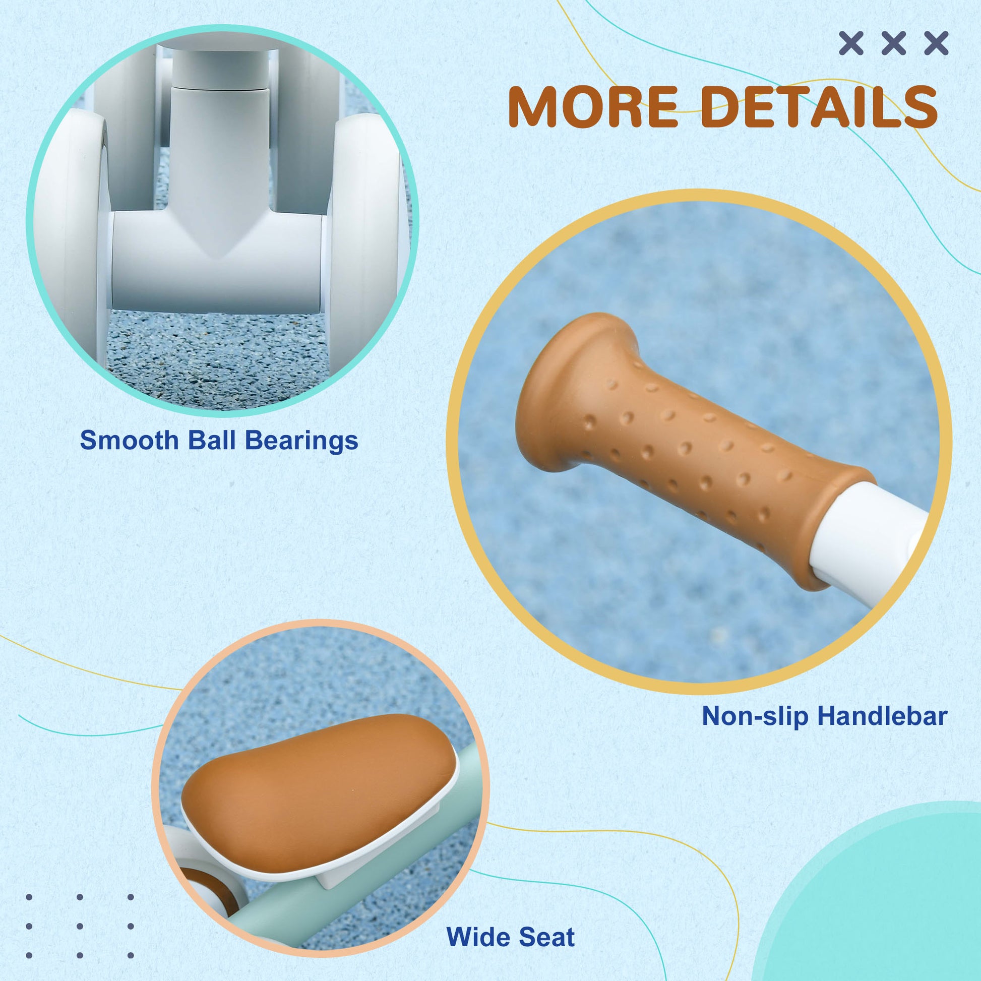 AIYAPLAY Kids Balance Bike for 1-3 Years Old with Adjustable Seat, Silent Wheels, Green