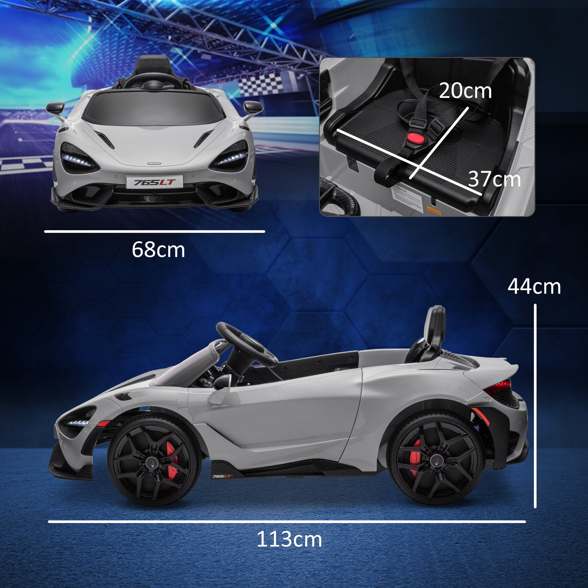 AIYAPLAY McLaren 765LT Licensed 12V Kids Electric Ride on Car with Butterfly Doors, Remote Control, Transport Wheels, Grey