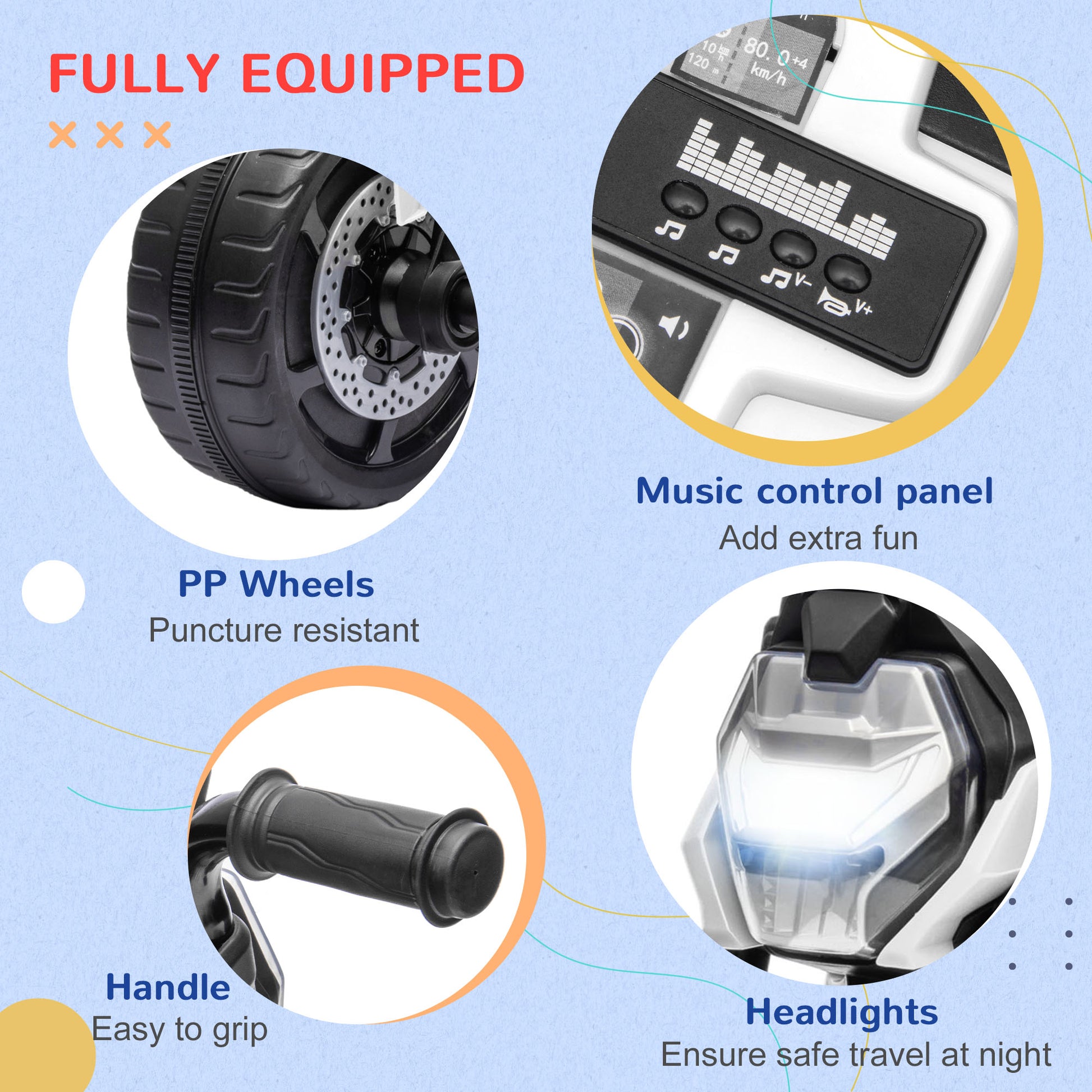 AIYAPLAY Motorcycle Design, 3 in 1 Toddler Trike, Sliding Car, Balance Bike with Headlight, Music, Horn, White