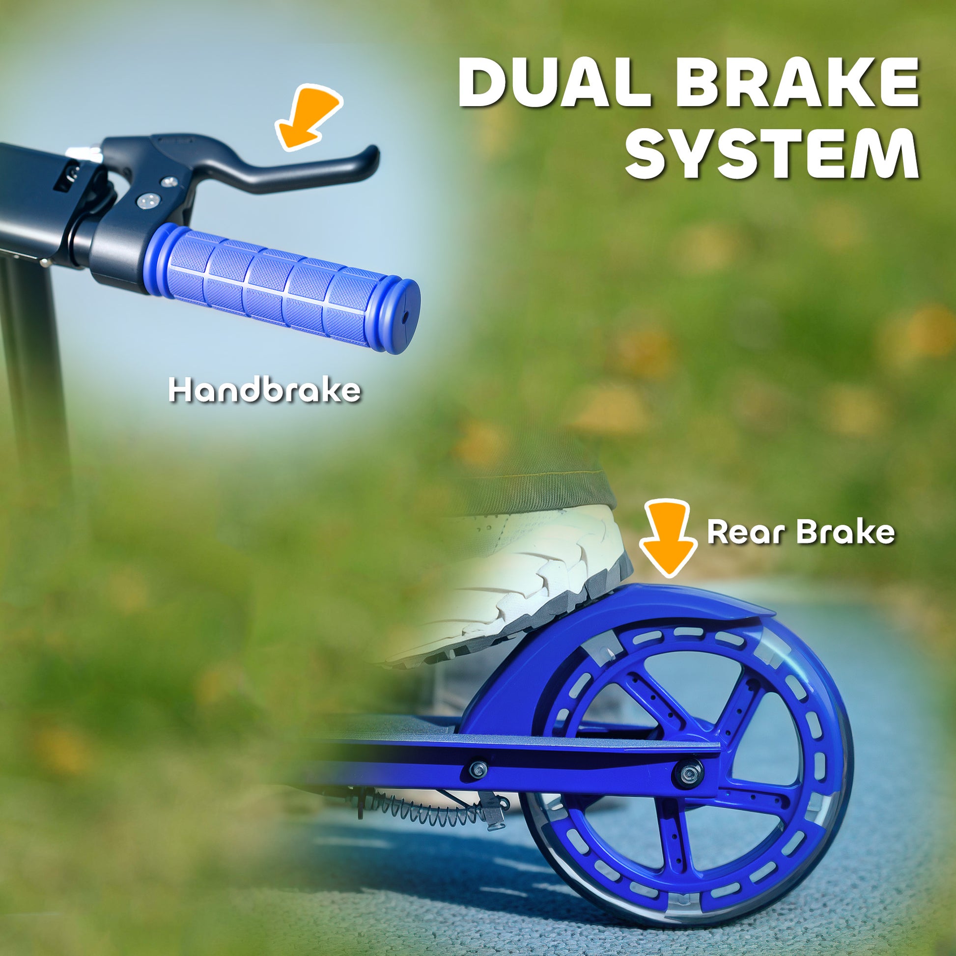 AIYAPLAY Scooter for Kids Aged 3-8 Years, with Adjustable Handle, Two Light Up Wheels, Handbrake, Rear Brake, Blue