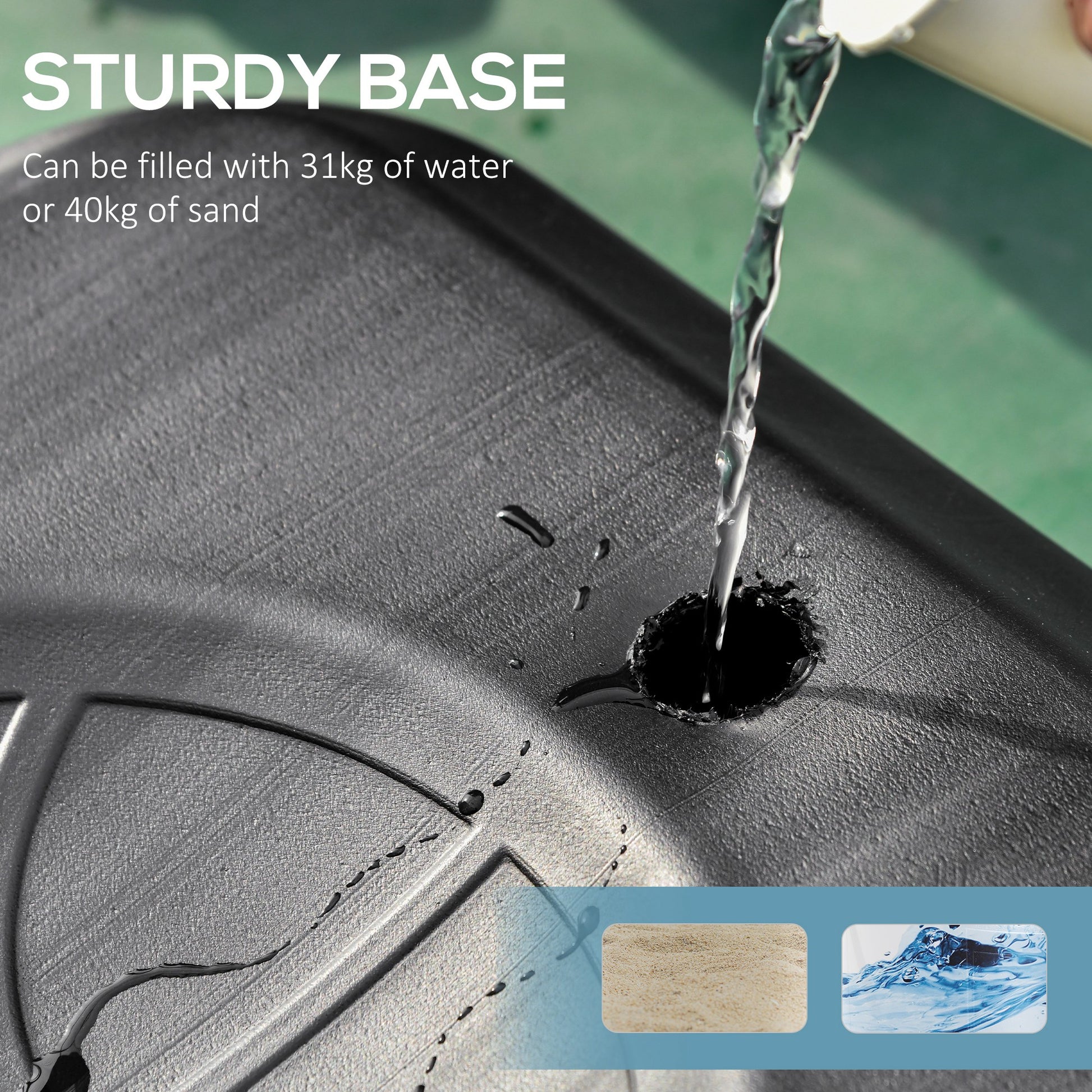 - Base capacity: 31kg of water or 40kg of sand