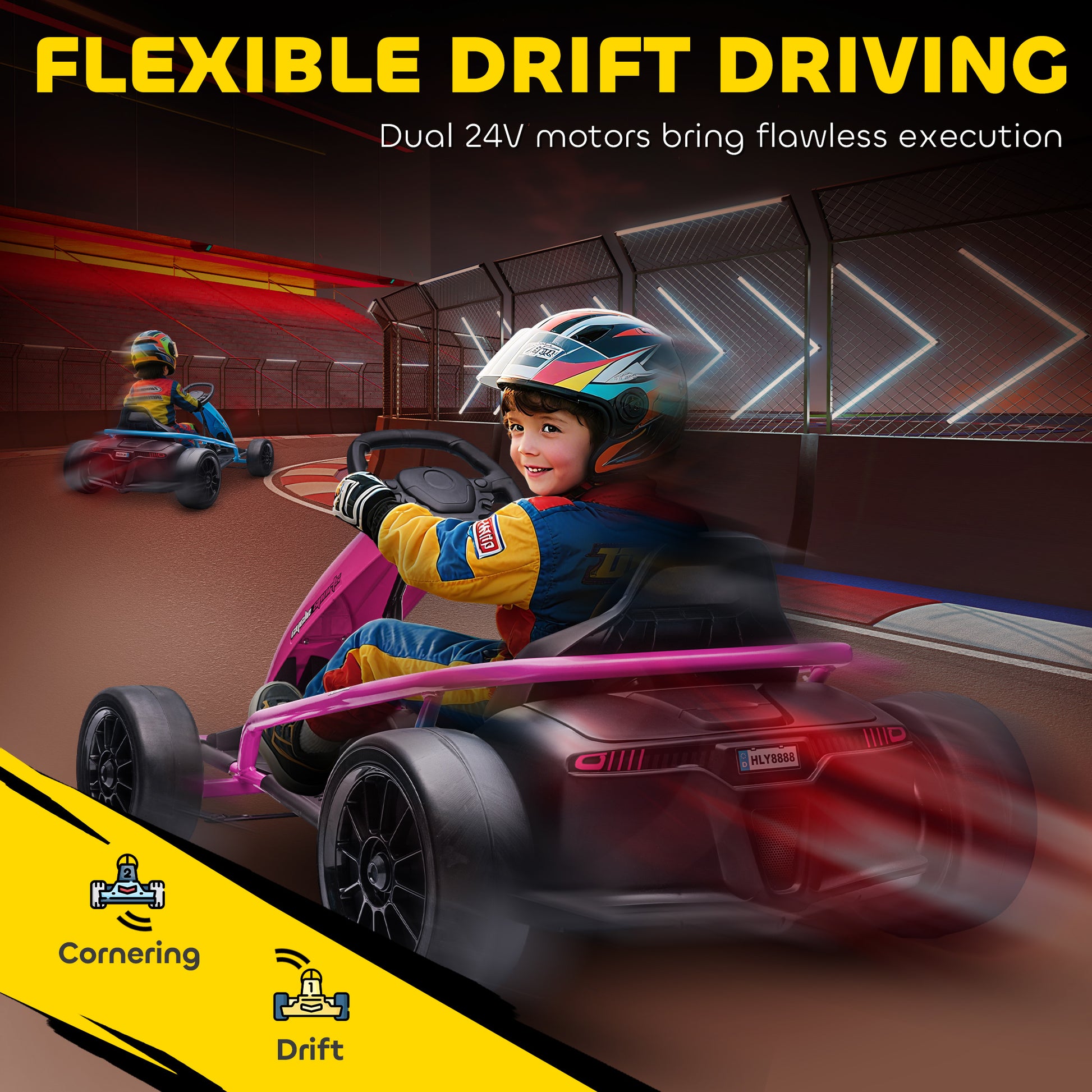 HOMCOM 24V Electric Go Kart for Kids, Drift Ride-On Racing Go Kart with 2 Speeds, for Boys Girls Aged 8-12 Years Old, Pink