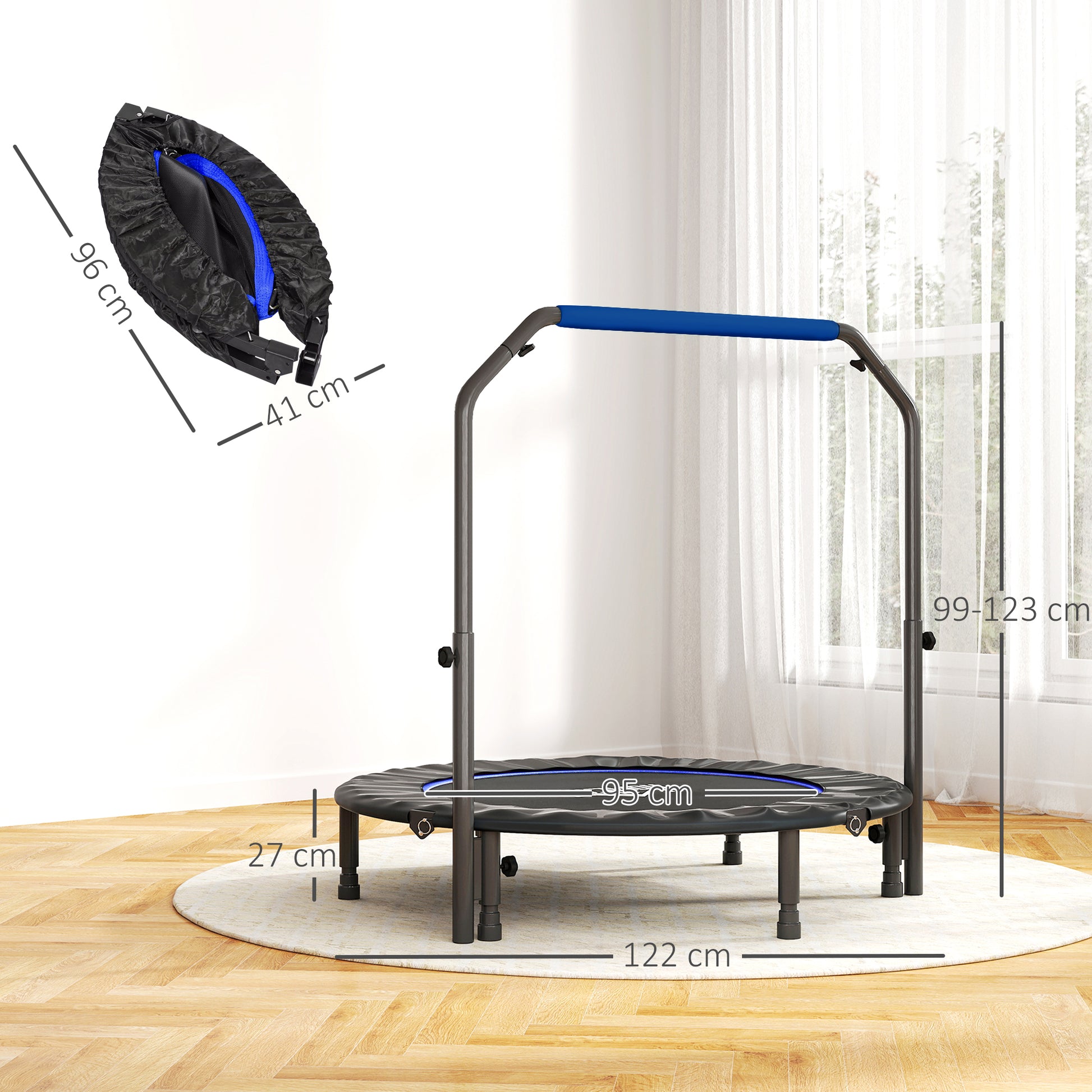 HOMCOM 48" Foldable Mini Fitness Trampoline, with Adjustable Foam Handle, Blue