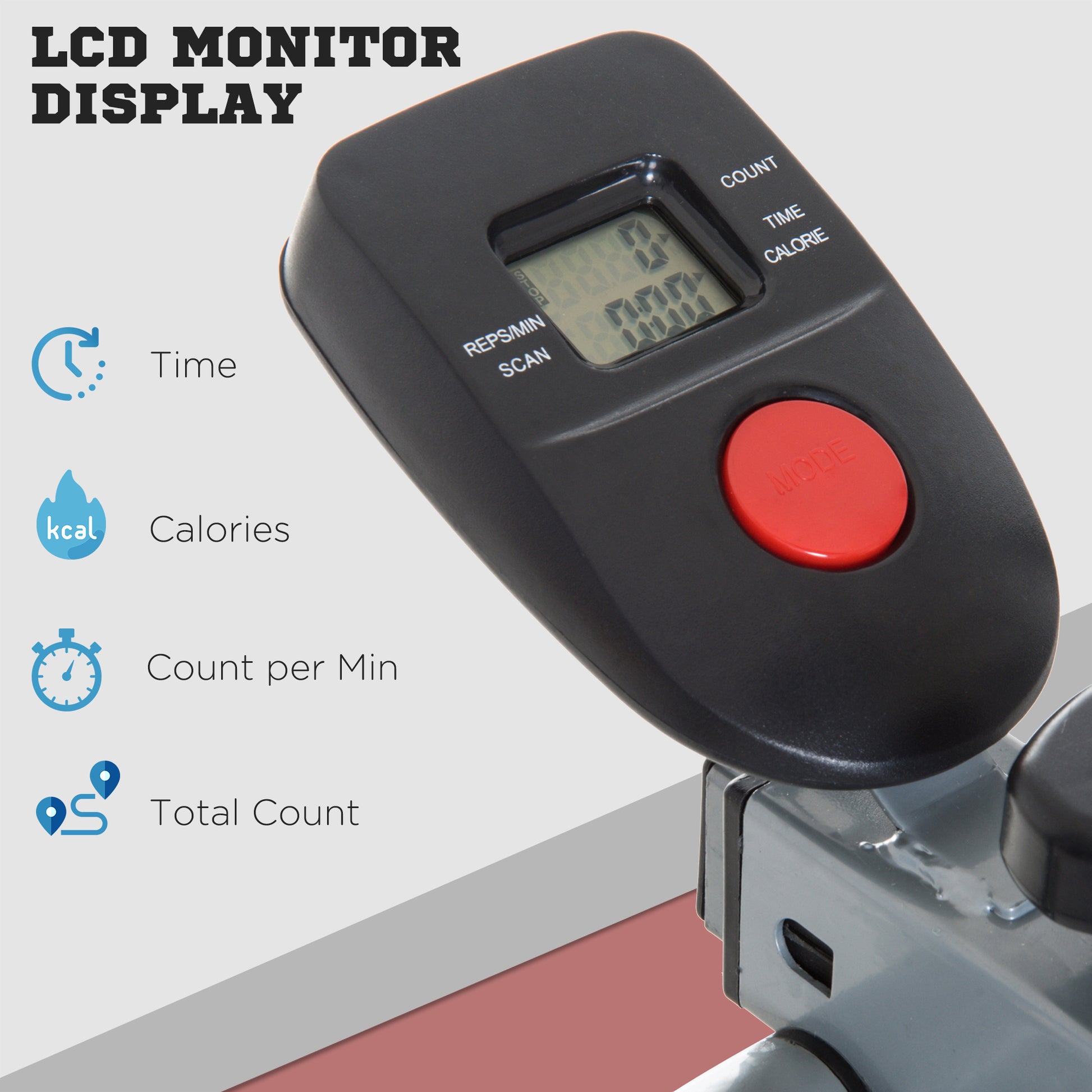 - LCD monitor tracks calories, time and distance, allowing you to keep goals