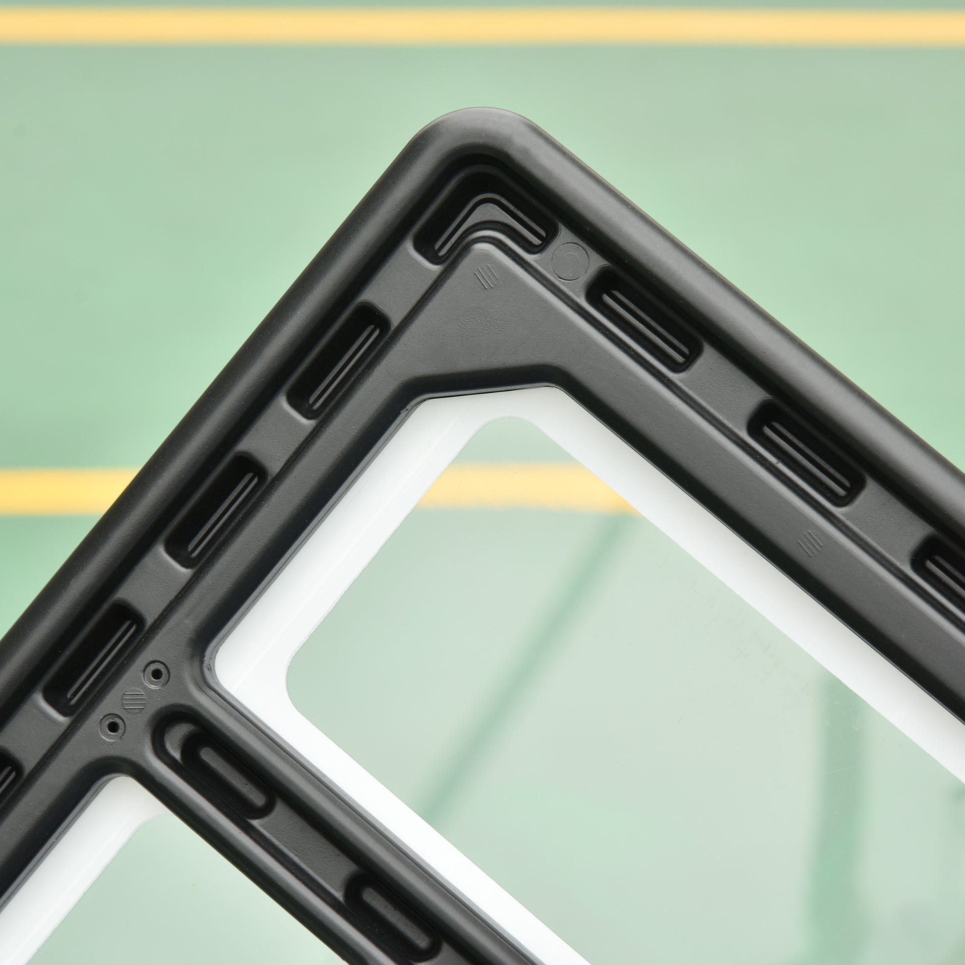 - Large backboard with a nylon net for reflecting and catching the ball safely