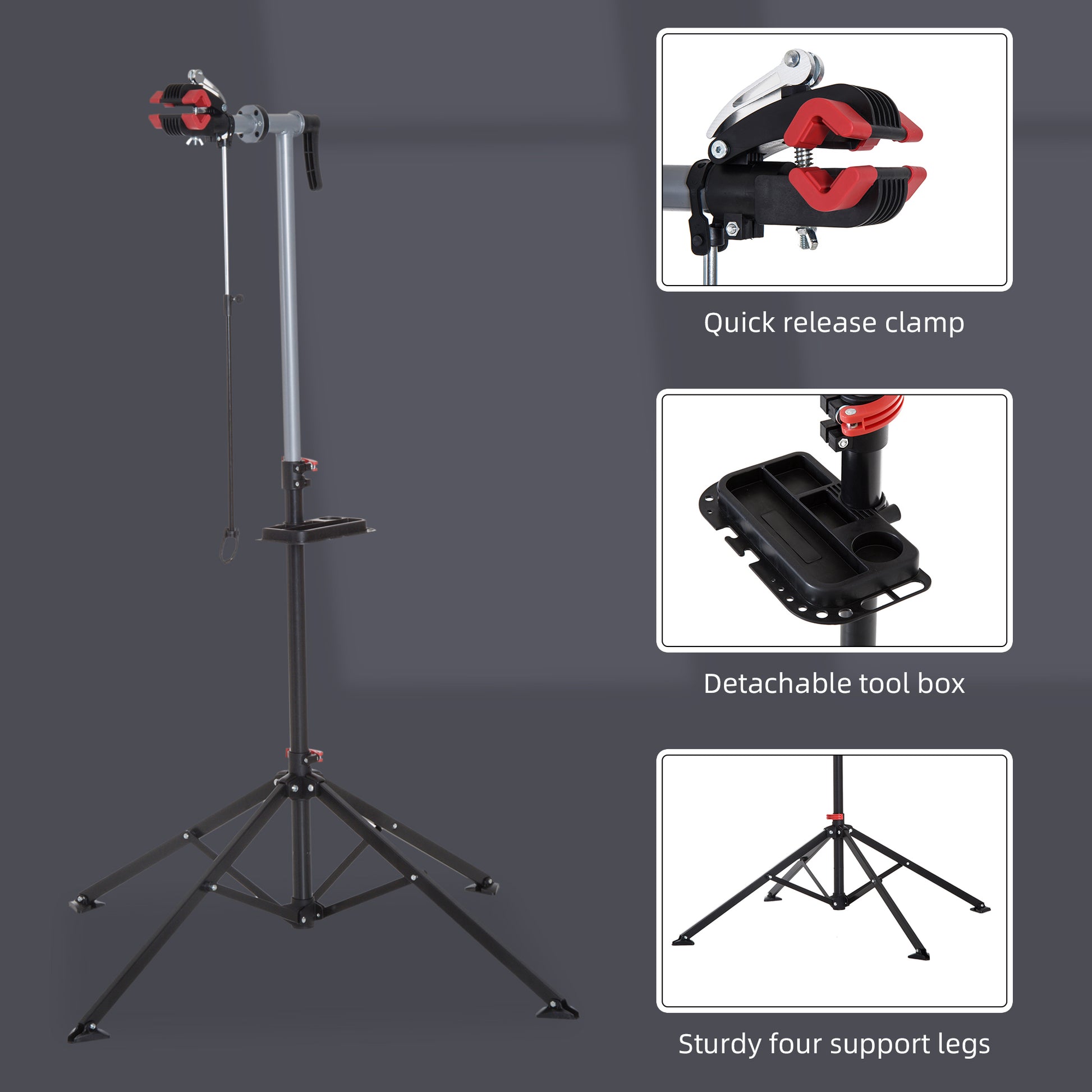 HOMCOM Folding Bike Repair Stand Bicycle Bike Stand For Maintenance Display Cycle Rack with Tool Tray, Height Adjustable