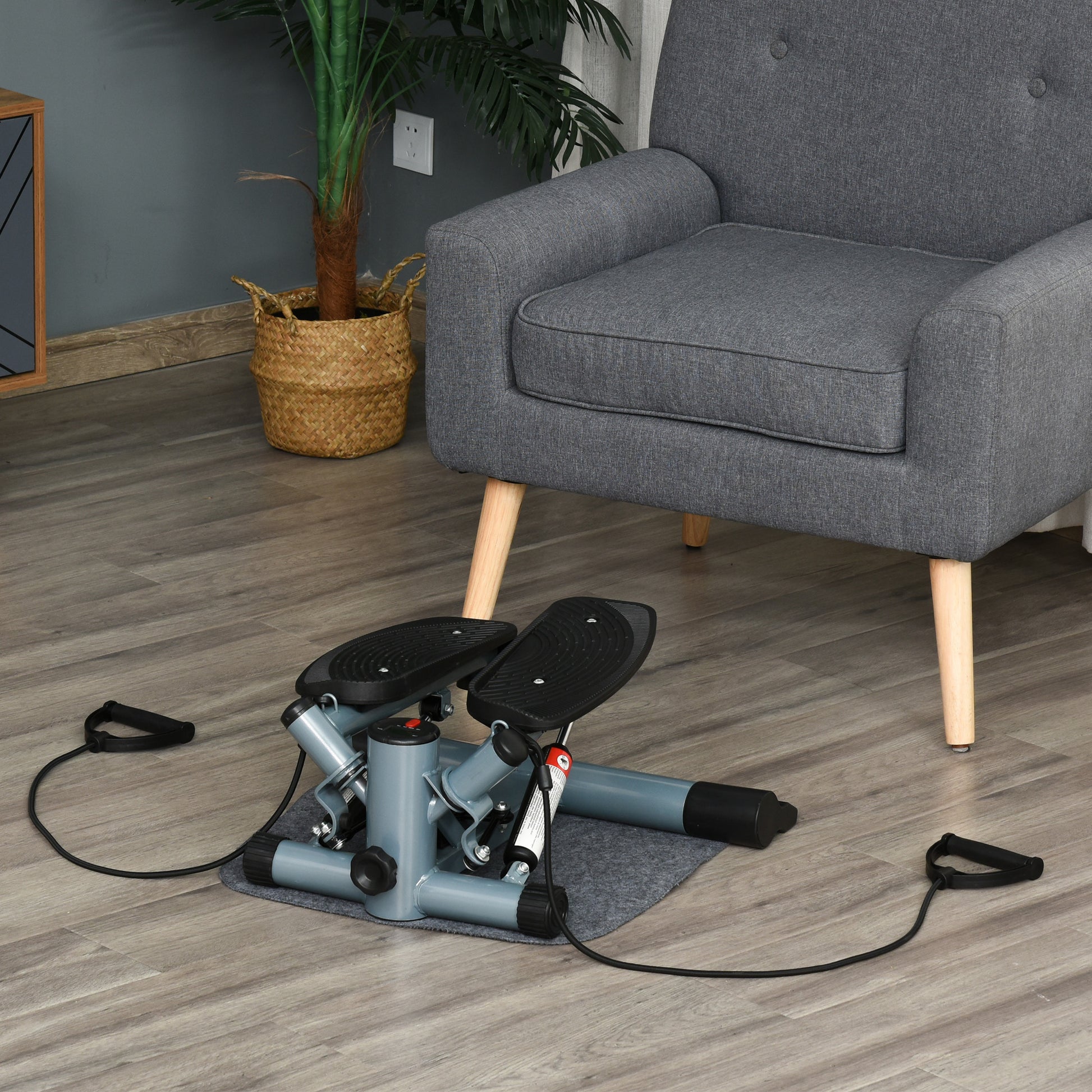 HOMCOM Mini Stepper Step Machine with Resistance Bands and Cushion Mat for Leg Arm Full Body Training Fitness Stair Stepper