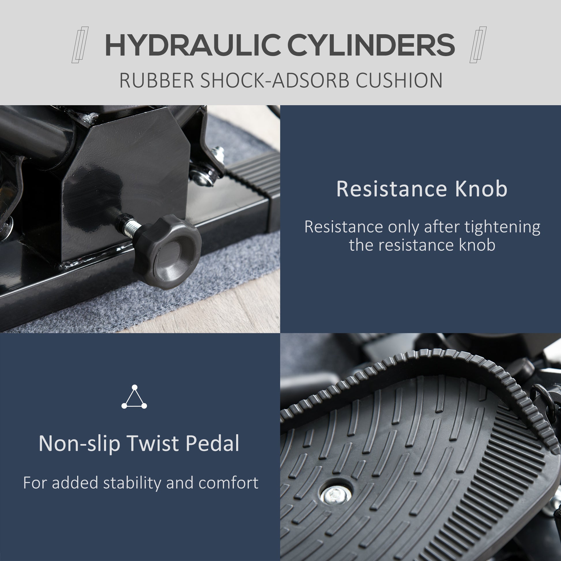 - Made from sturdy steel with 2 non-slip texured foot pads with hydraulic cylinders