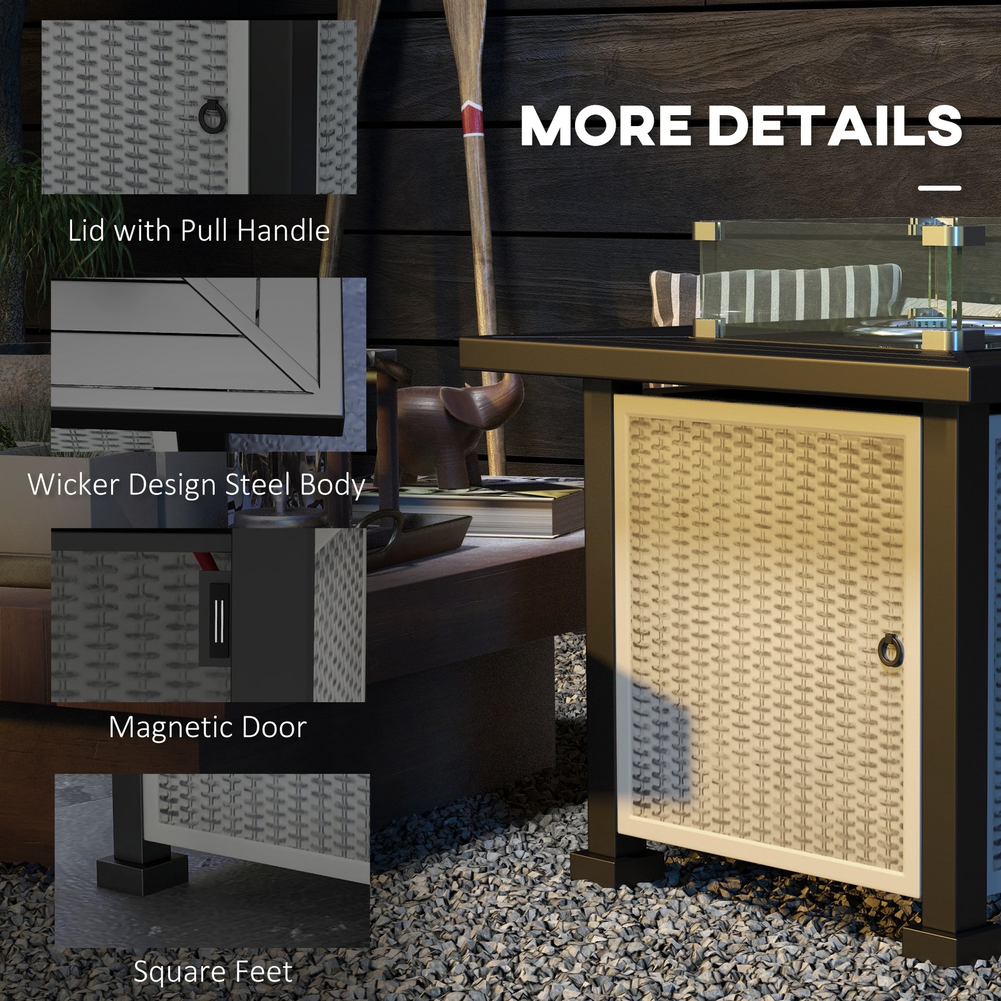 - Fire Pit Size: 44.5L x 44.5W cm