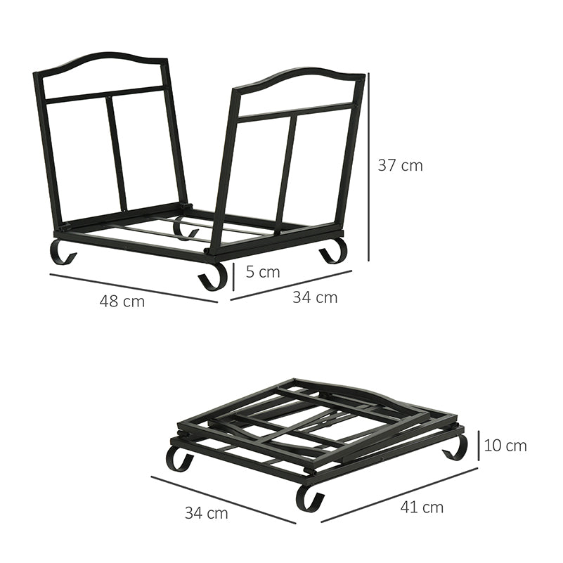 Outsunny Metal Firewood Log Holder Indoor Outdoor Folding Firewood Rack Fireplace Wood Storage Shelf w/ Scrolls, Rust-Resistant, Black, 48L x 34W x 37Hcm