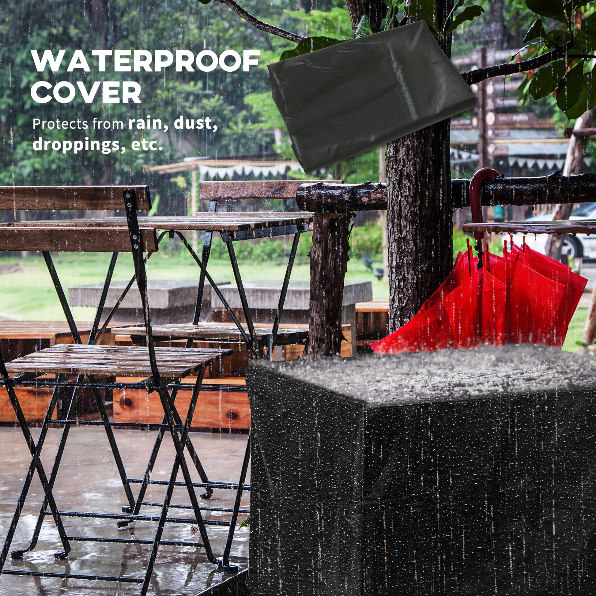 - Rain cover included. 5kg propane tank is required - not included