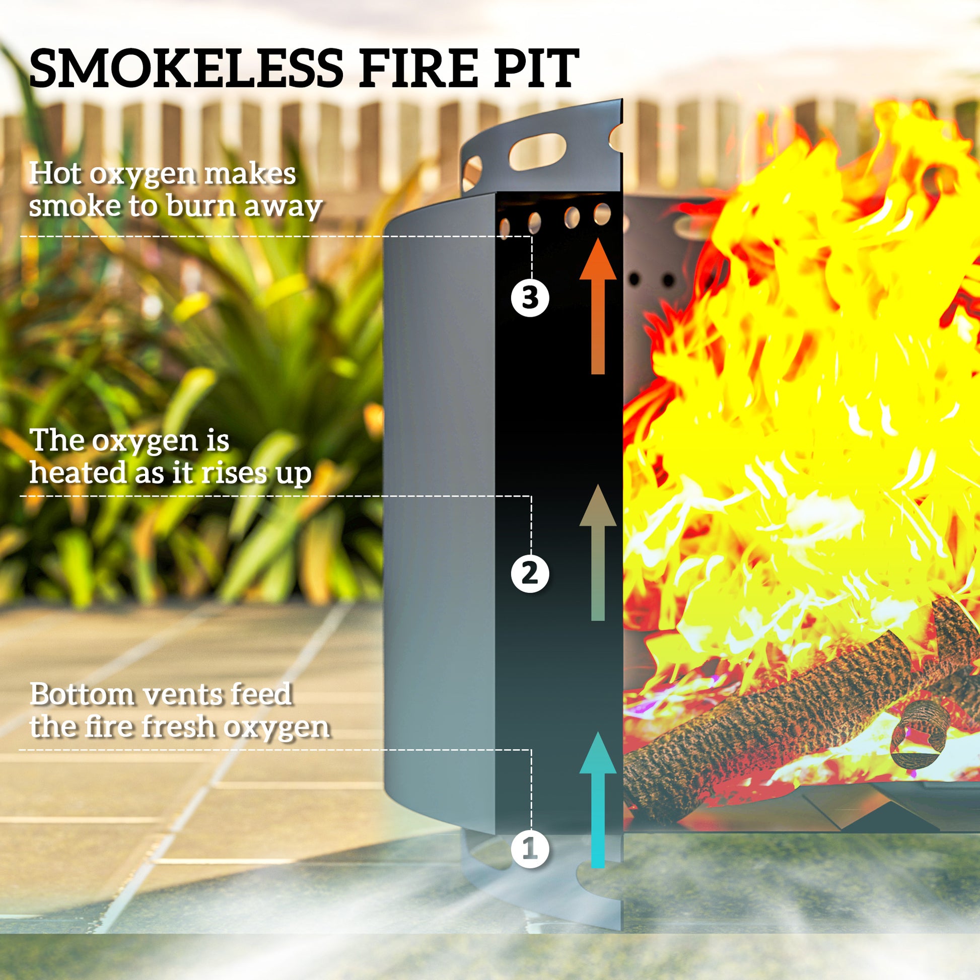 Outsunny Smokeless Fire Pit, 48.5cm Portable Wood Burning Firepit with Poker for Garden Camping Bonfire Party, Metal, Dark Grey