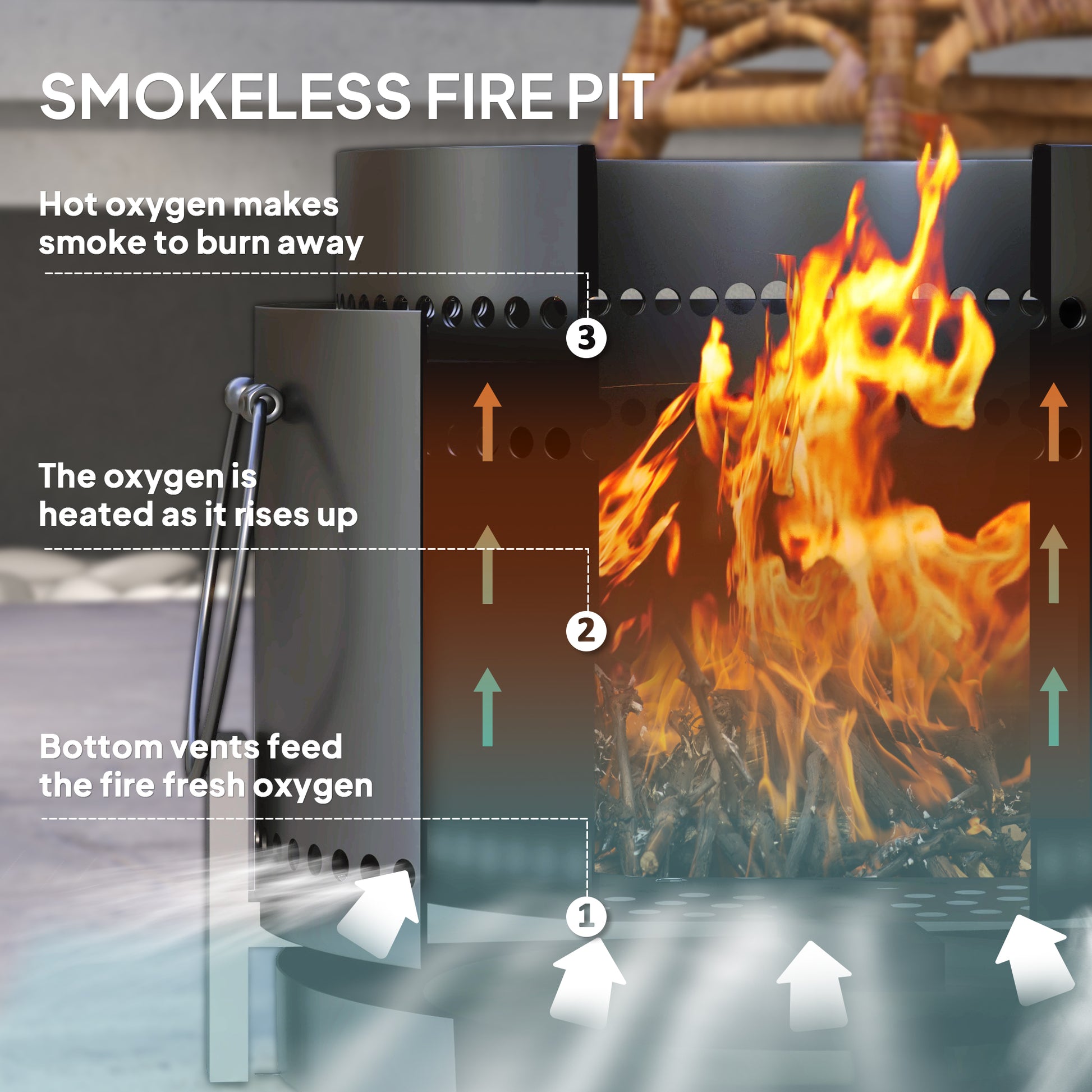 Outsunny Smokeless Fire Pit with Ash Catcher, 37cm Portable Wood Burning Firepit with Poker for Garden Camping Bonfire Party, Metal, Dark Grey