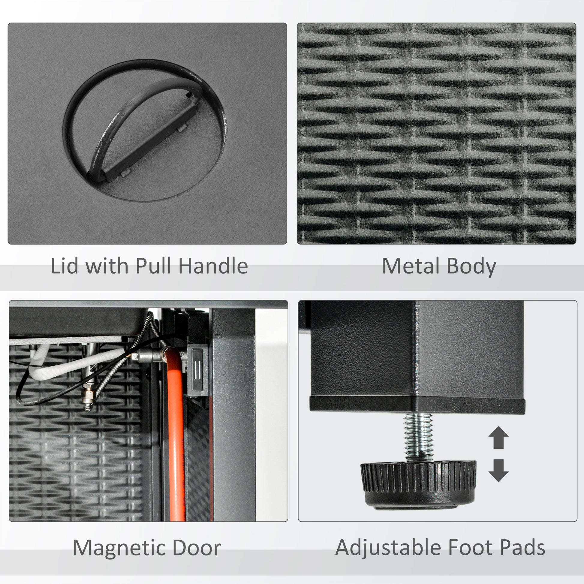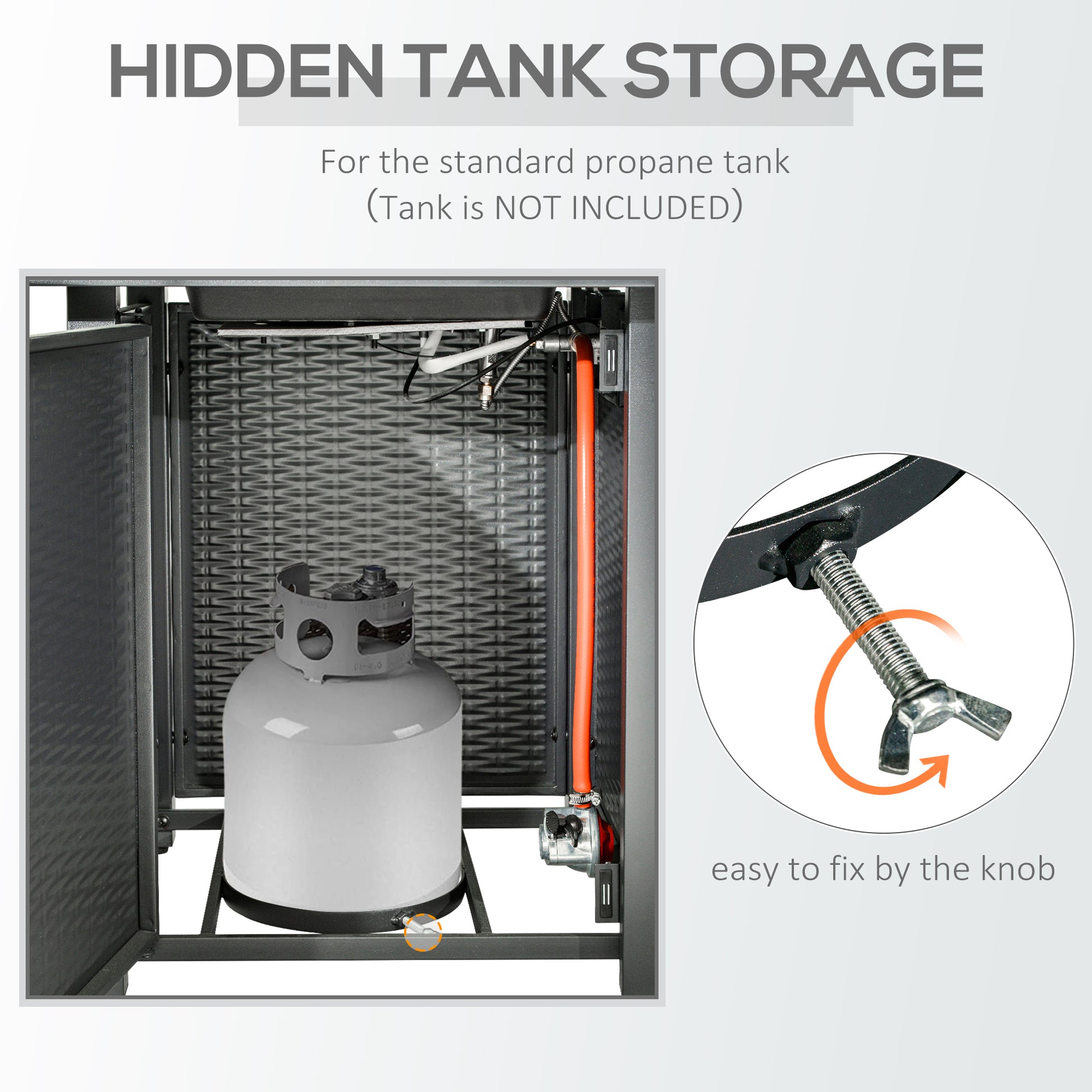 Enjoy the ultimate garden ambiance all-year-round with this Outsunny fire pit table. The rattan design is stylish, with an inner compartment to hold the propane tank safely. The garden furniture with 40000 BTU burner means you can enjoy a flame without worrying about messy ashes. Whether it's on a porch, patio, or in your garden, our gas fire pit table is a great addition to your home.