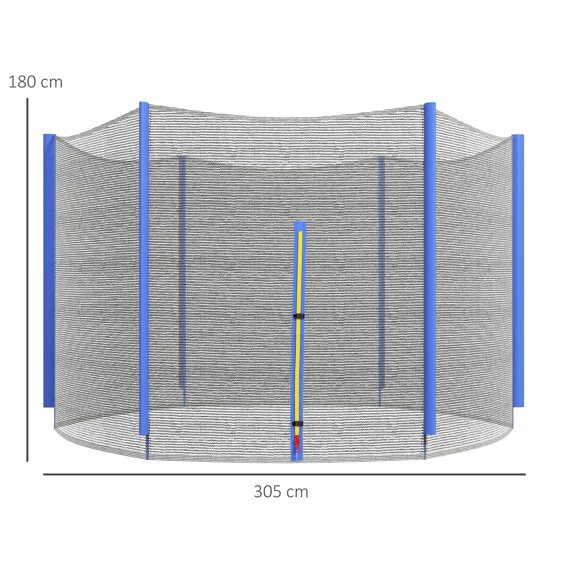 Keep your safe and protected with the SPORTNOW 305cm trampoline enclosure replacement. It fits ?244cm/8ft trampolines with six straight poles to replace your old or ripped safety net. Our trampoline safety enclosure is made from tough, weatherproof polyethylene, allowing indoor and outdoor use. The entrance of the net includes a sealable zipped system to maximise protection. An important safety accessory, it creates a trampoline you can trust (Enclosure net ONLY, no poles included).