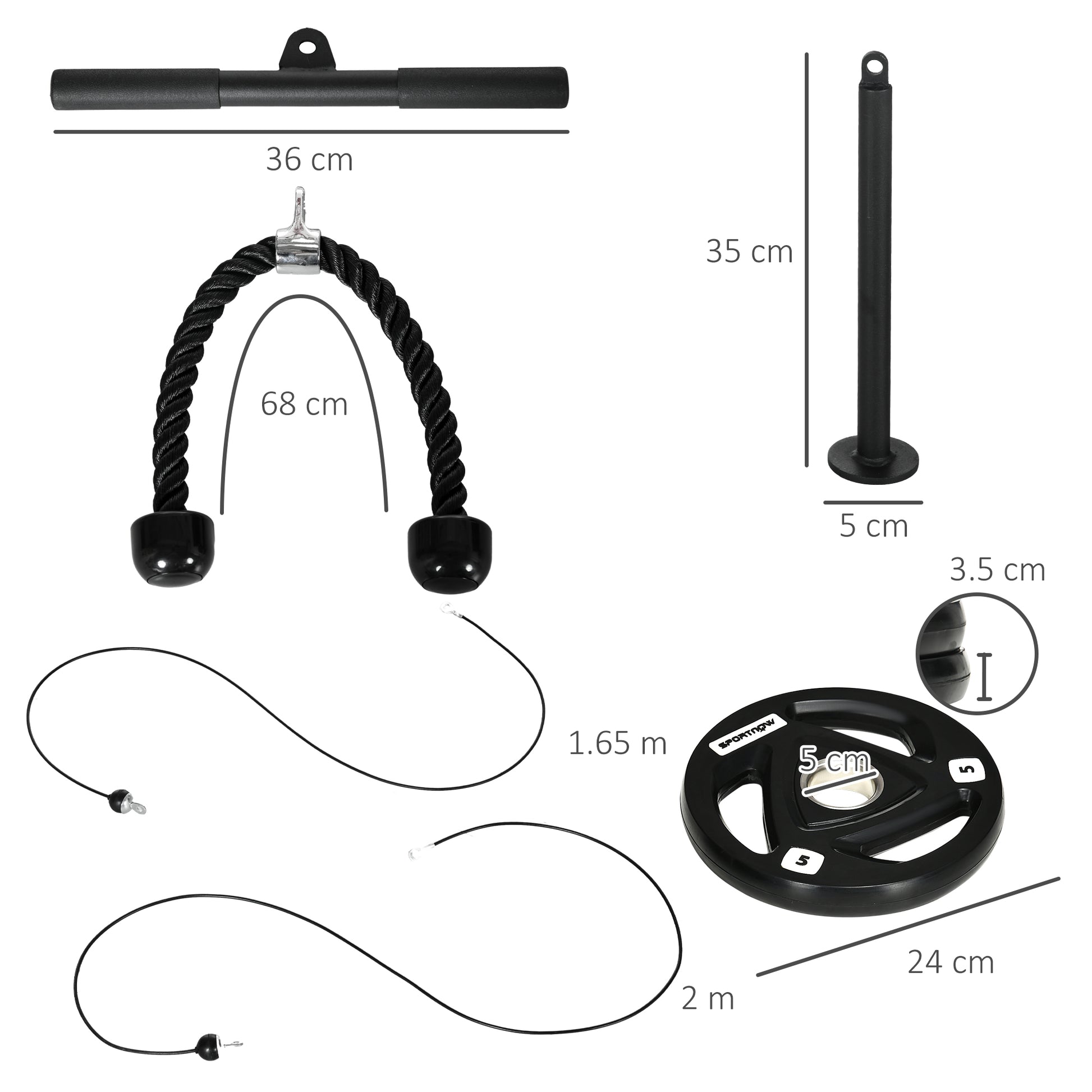 SPORTNOW Cable Machine Pulley System with 2 x 5kg Weight Plates, Lat Pull Down System with Loading Weight for Home Gym Biceps Triceps Arm Shoulder Back Training