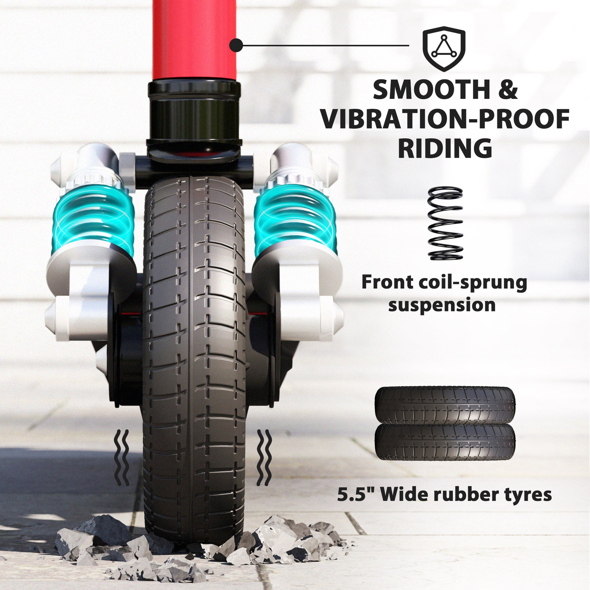 - Coil-spring suspension and rubber tyres for smooth rides