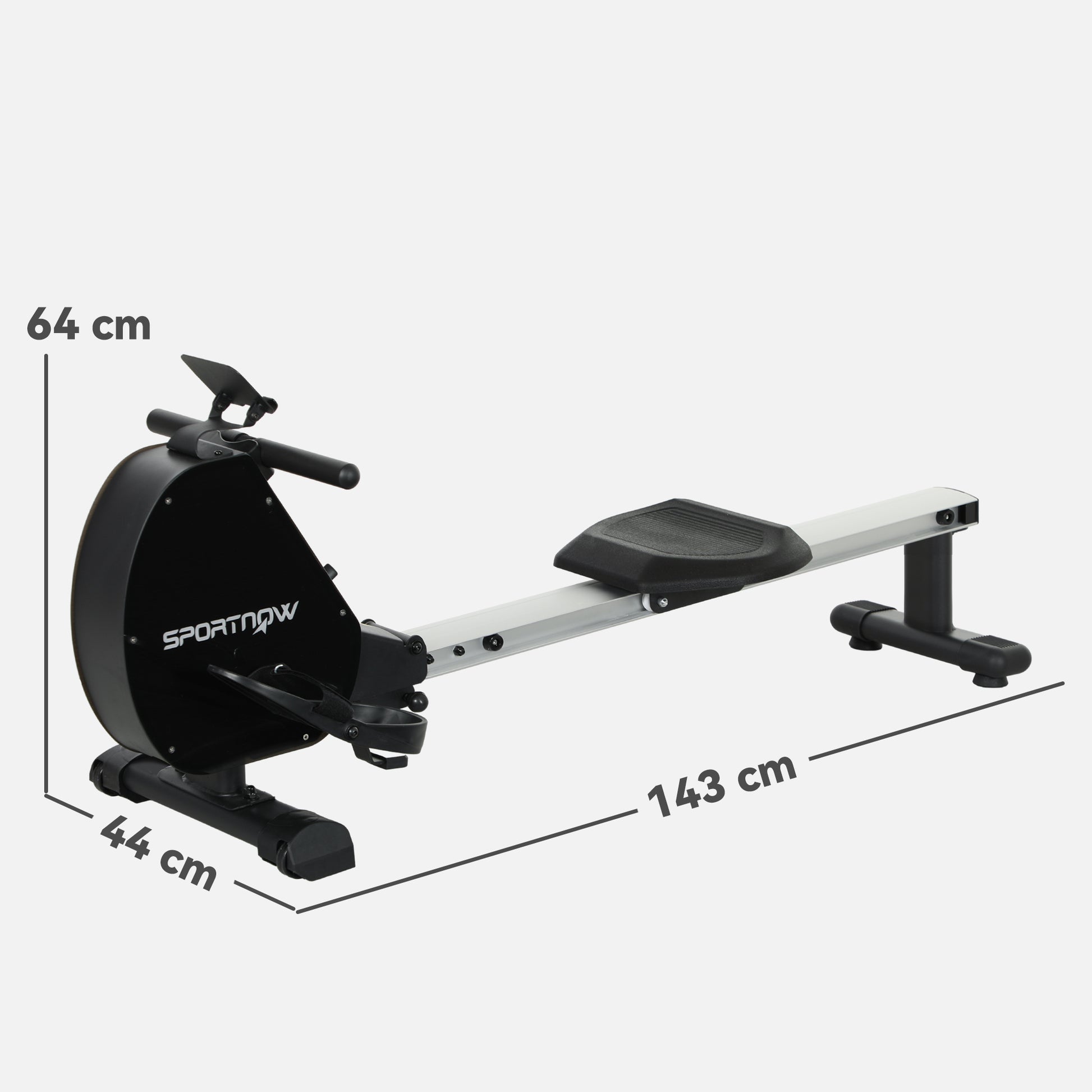 Boost your overall fitness with the SPORTNOW rowing machine. With 16 levels of resistance, you can start at a comfortable level and increase it as you improve. The LCD display keeps track of time, speed, distance and calories, so you'll always know your progress. This machine operates quietly and can be folded 180° for easy, space-saving storage when not in use – everything you need for your home gym.