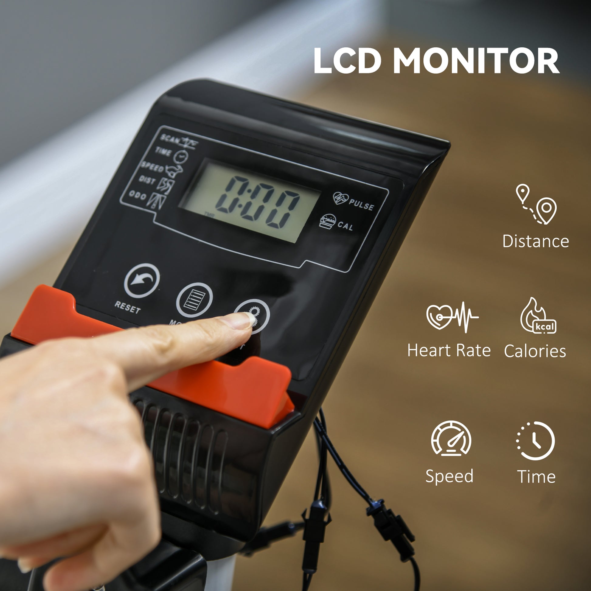 Stay active at home with the SPORTNOW exercise bike, offering eight levels of magnetic resistance for a silent, customised workout, suitable for all fitness levels. The seat adjusts to eight different heights for a good fit. Track your progress on the LCD monitor, displaying speed, time, calories burned, distance and heart rate. Brilliant for your home fitness routines, this stationary bike fits seamlessly into your space, ensuring an engaging exercise session every time.