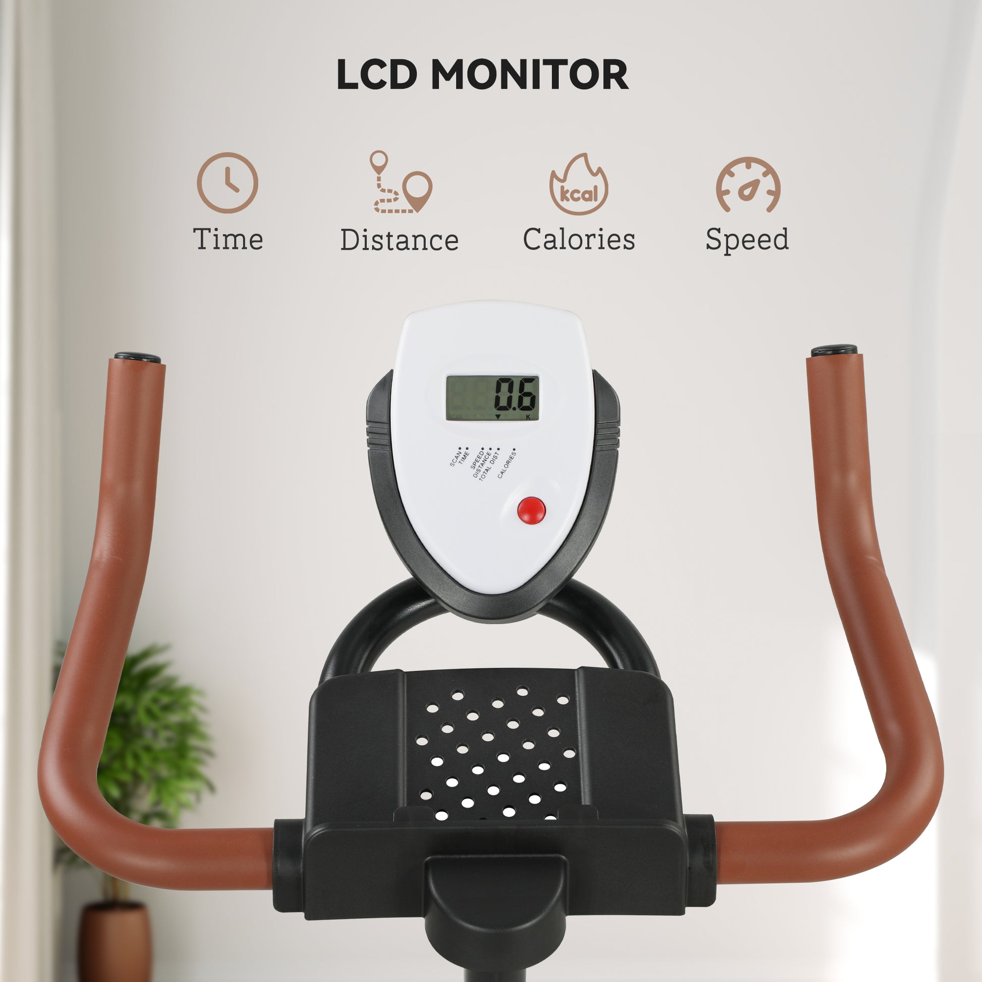 - LCD monitor tracks your progress, while the tablet holder lets you have entertainment