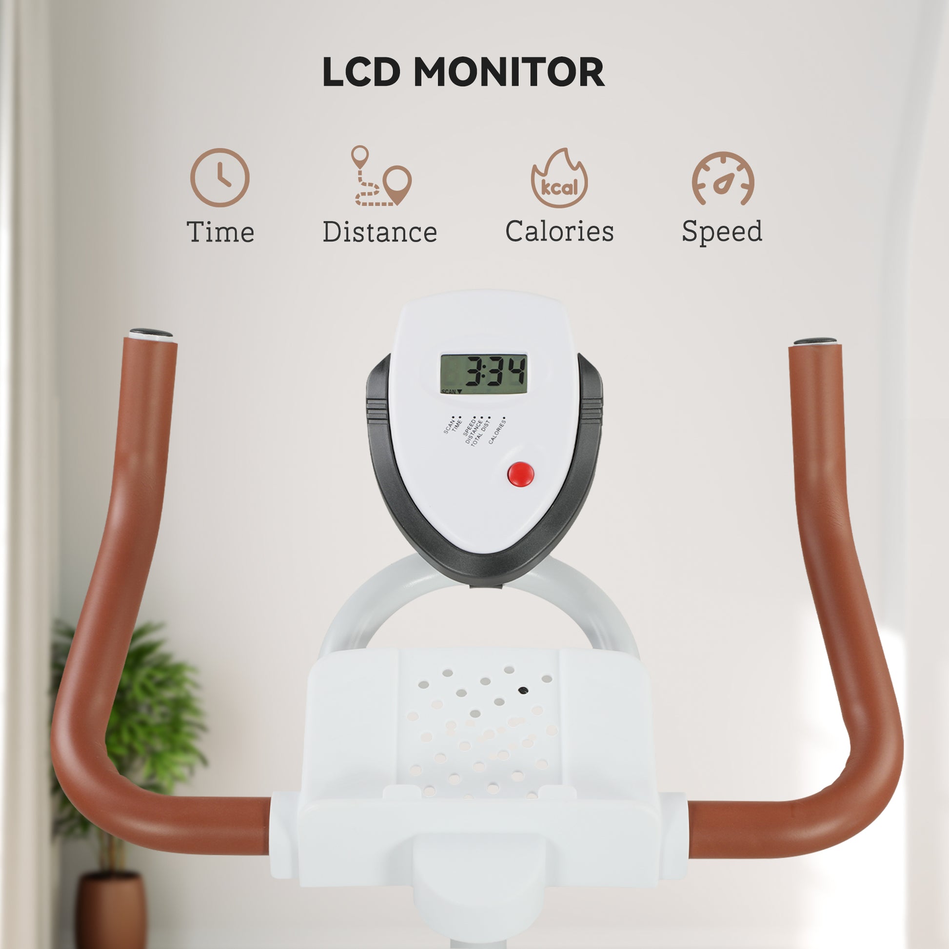 - LCD monitor tracks your progress, while the tablet holder lets you have entertainment