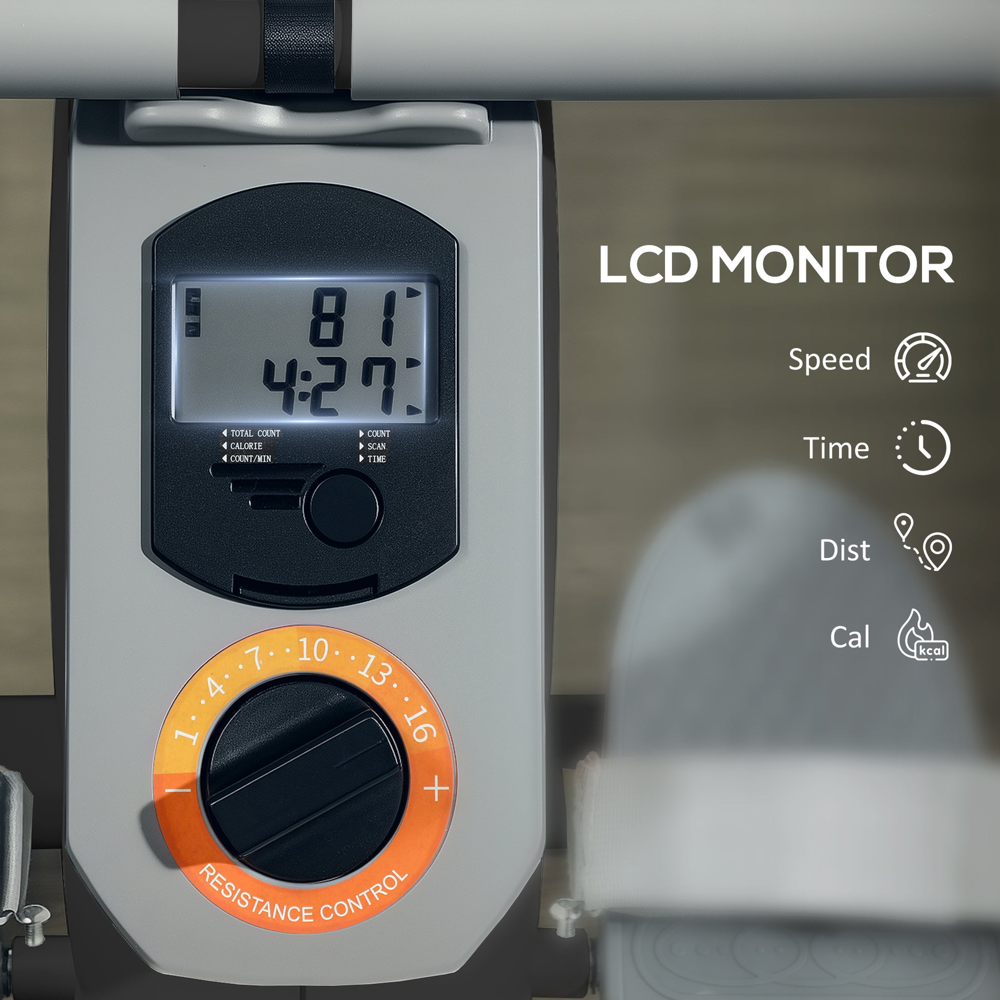 SPORTNOW Rowing Machine, 16-Level Magnetic Rower Machine with LCD Monitor and Phone Holder, Black