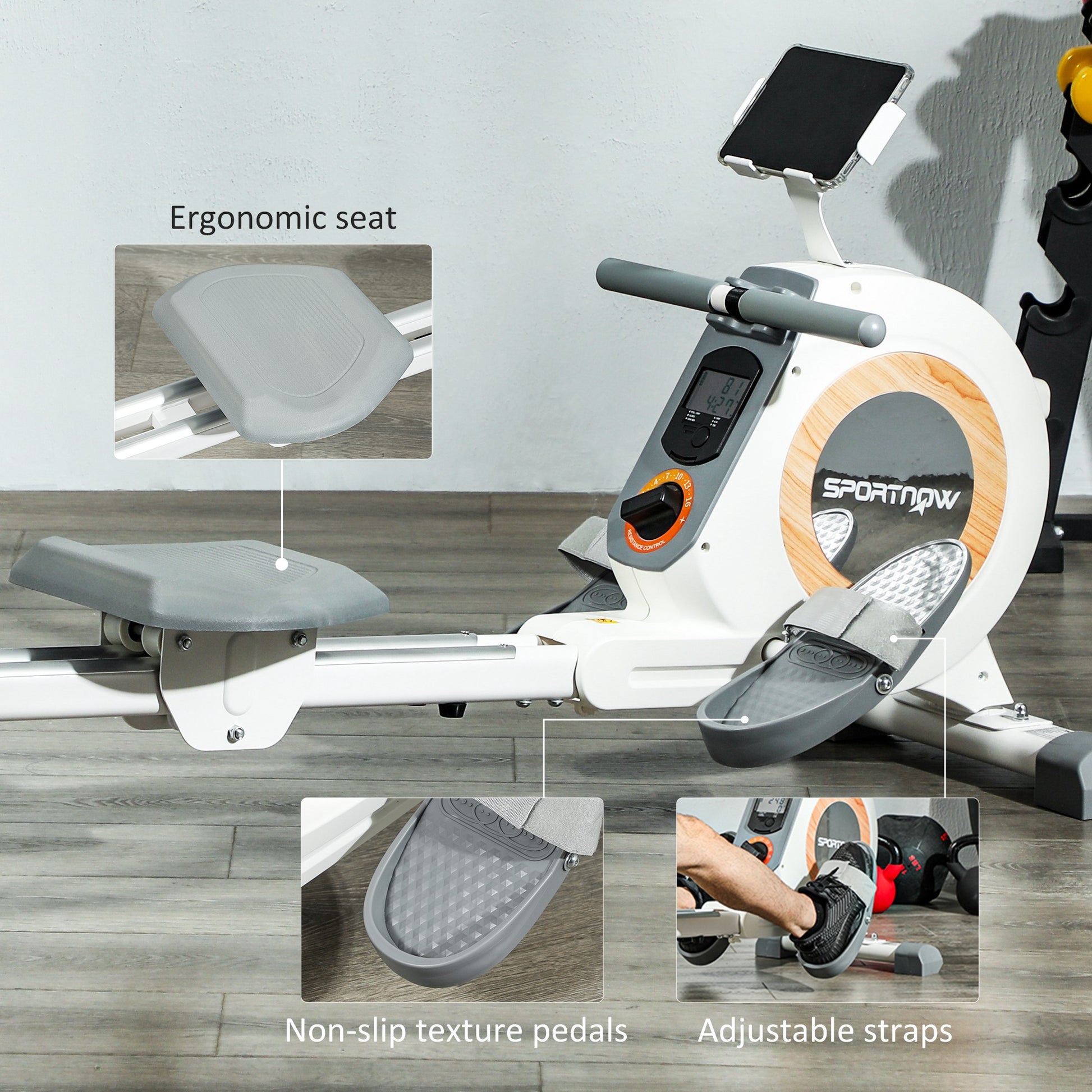 SPORTNOW Rowing Machine, 16-Level Magnetic Rower Machine with LCD Monitor and Phone Holder, White